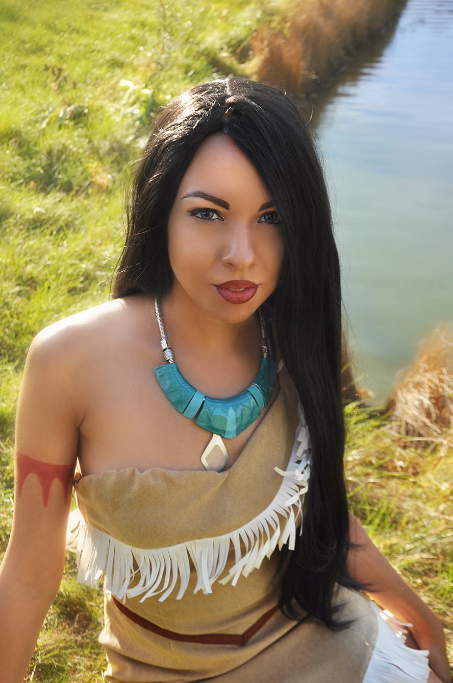 For a long time I struggled to find a good Pocahontas wig that was silky, smooth, and had the right hairline to frame the face. With other centerpart or bangless wigs, the framing was too harsh (like Morticia from Adamms Family!) or the hair would fall too much in my face (felt like Violet from Incredibles). But with Epic Cosplay’s Eros wig, I was able to slightly slick back the side of the hair using a hair dryer and Got 2 Be. I also gave the bangs a little “oomph” in the front, to give my face better framing. So with the versatile part, I was able to finally create a softer and more natural look! Thanks, EpicCosplay!