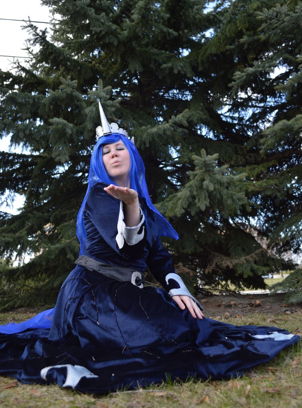 The wig is simply styled; the bangs are swept over with lots of hairspray in each layer to resemble Luna’s mane forelock, the rest left loose and unstyled under a sparkly veil/crown that matches the wig colour. Epiccosplay was a lifesaver for me! I had originally ordered a similar wig months ago for the costume, then realized with only a month to the con when I tried it on, it was WAY too small and the top was screwed up. I couldn’t possibly work with it and had to rush-order a whole new wig. It took me a grand total of twenty minutes when I got onto epiccosplay for the first time to make an account and buy this wig and I had it at my house in a week (I’m from Canada, so all shipping takes longer, and I didn’t have so little time that I needed the overnight option:P). And now I barely buy wigs from anywhere else, this wig is wonderful, it never tangles and is very comfy.