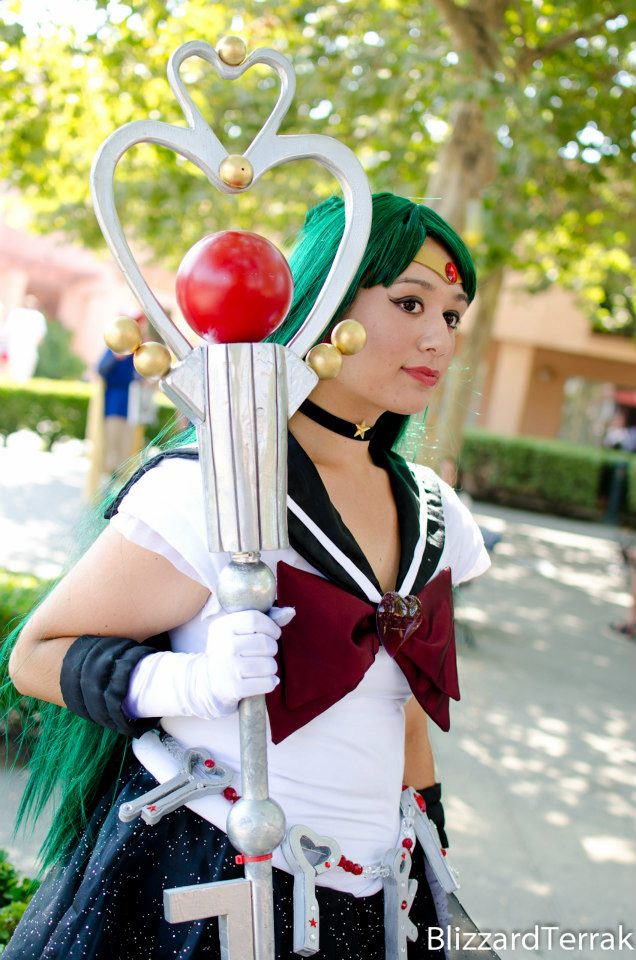 Sailor Pluto is one of my favorite sailor scouts. She is such a beautiful and elegant character in the series, a strong warrior with the duty to protect time and maintain its order. It was a no brainer for me that I had to cosplay her. She was my first cosplay choice to do. I had cosplayed once when I was 16, but I didn’t get back into it until I was about 20. My first Sailor Pluto cosplay and wig were both bought from eBay. The costume was horrid, the wig was the wrong green, but I still had fun. As I got more involved with the cosplay community, I was invited into a group of cosplayers by a dear friend. They were in need of a Princess Serenity for their Sailor Moon skit, and I happily offered to take up that request. It was from that moment that I decided I wanted to fully immerse myself into cosplay, and craft my own costumes. Some members of the group wanted to do another Sailor Moon skit for the next con, so I decided to finally make my very own Sailor Pluto uniform. It was the first time I had taken on a costume all by myself. I was sort of stubborn then, and wanted to do everything myself. I didn’t want to bother my friends and ask them for help 24/7. The end result was… okay. I wasn’t happy with the way the uniform turned out, but I certainly did learn a lot from that project!