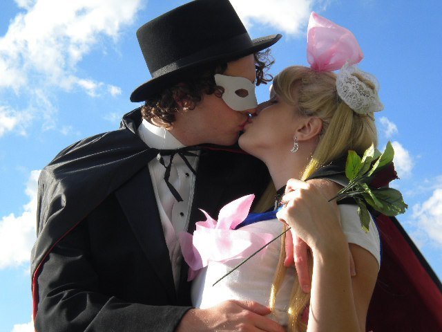 Here’s one of entries for our Valentine’s Day Couples Contest! Kelly and Savannah are cosplaying as Tuxedo Mask and a loli-fied version of Sailor Moon from Sailor Moon. While neither of these cosplayers used our wigs for their costumes we do have a few wigs that would work perfectly for these characters! For Tuxedo Mask we recommend our Hermes Wig in Black. We have a Sailor Moon Character Wig perfect for Sailor Moon as well! Look on to see some more about their cosplays!
