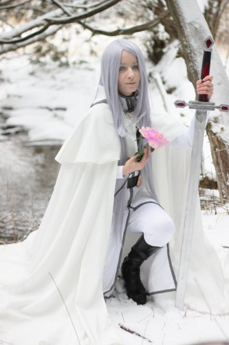 -I love the series and I chose Gunter because not only is he my favourite character from it, but I felt his all white unifrom would look stunning as part of a winter photoshoot. (I live in Canada and we have a lot of winter) I searched a long time to find the perfect light silver purple tone for his hair and even dyed a wig myself but was not happy. Epiccosplay finally surprised me by having it in the right length and style too all ready to go! The subtle silver purple hair colour makes all the difference against all that white. It just wouldn’t be Gunter without it.