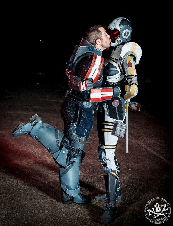 Here’s another entry for our Valentine’s Day Couples Contest! We have Bill and Britt as Commander Shepard and a Phantom from the game series Mass Effect! While the Phantom does not need a wig and Bill did not use one of ours for his cosplay we recommend taking our Hermes Wig in Dark Brown and trimming it down if you need to get this type of look but do not want to shave your head! Look below to see more info on their cosplay habits!