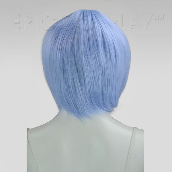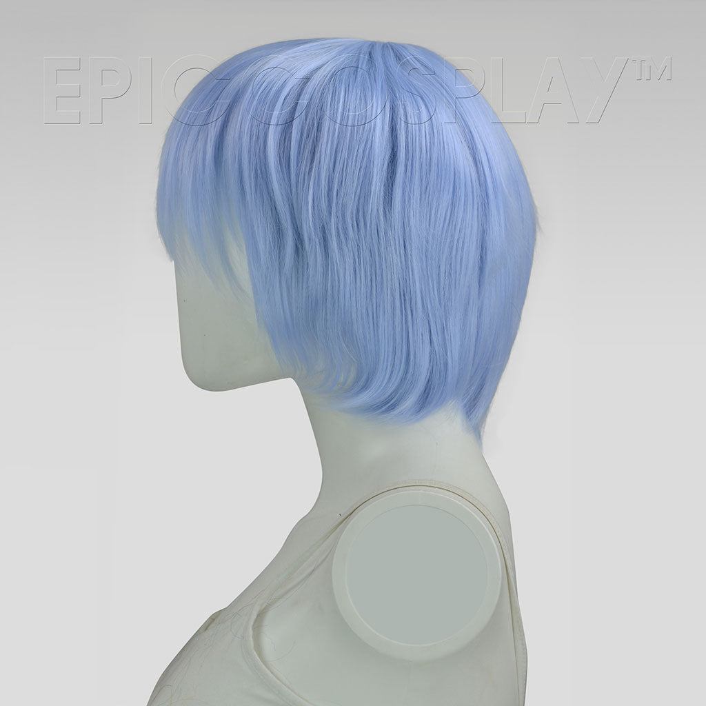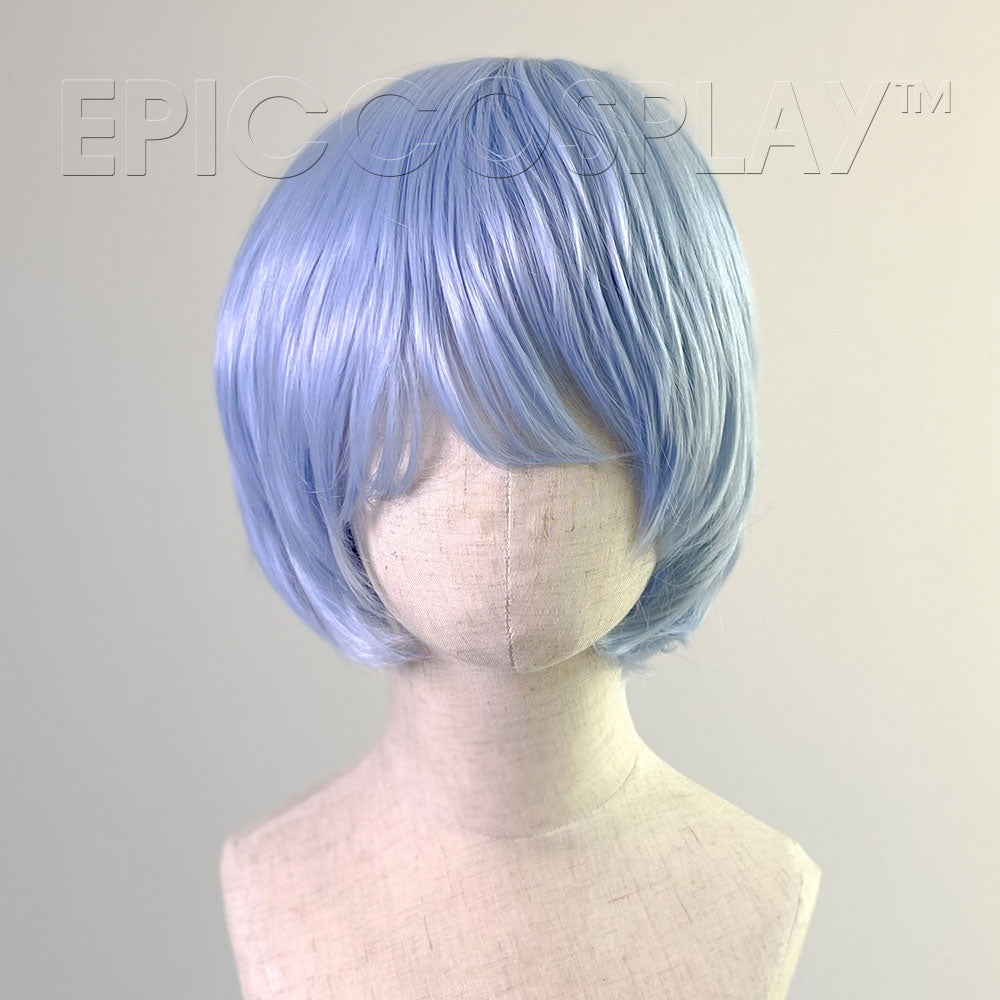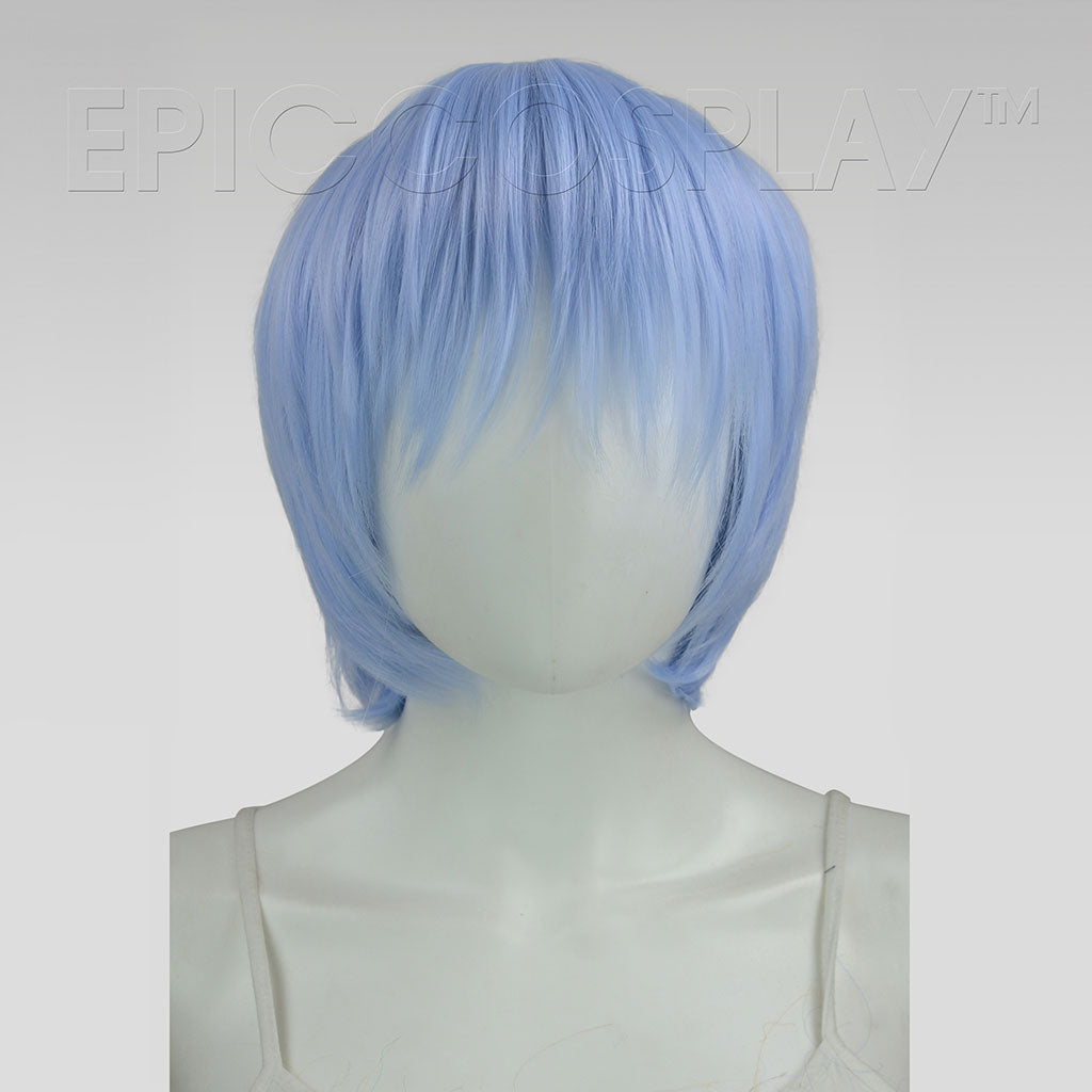 Aether Ice Blue Layered Short Wig Our Aether style Ice Blue layered short wig offers a versatile and easy to wear way of achieving a short and easy to manage hairstyle. This wig is perfect for both cosplay and daily wear without the commitment of cutting your own locks. Our adjustable, breathable 23" cap makes this Ice Blue layered short wig capable of fitting both male and female head sizes comfortably. The Aether style is also available in a variety of different colors, available to view here. A circular skintop at the crown of this Ice Blue layered short wig makes it easy to part and style in numberous ways. Bangs reaching 3.5" can be changed to face a variety of different directions, making almost any look possible. Altogether, this wig measures 12" in length and has short layers blended in for added texture. It comes with a naturally sleek look, but the short layers make it easy to spike this wig with the help of a little bit of product. Our heat resistant fiber, capable of withstanding heat up to 410 degrees Fahrenheit (though we suggest not exceeding 350F, as long-term exposure can change the texture of the fiber) make it possible to take styling tools such as flat irons and blow dryers to this wig.