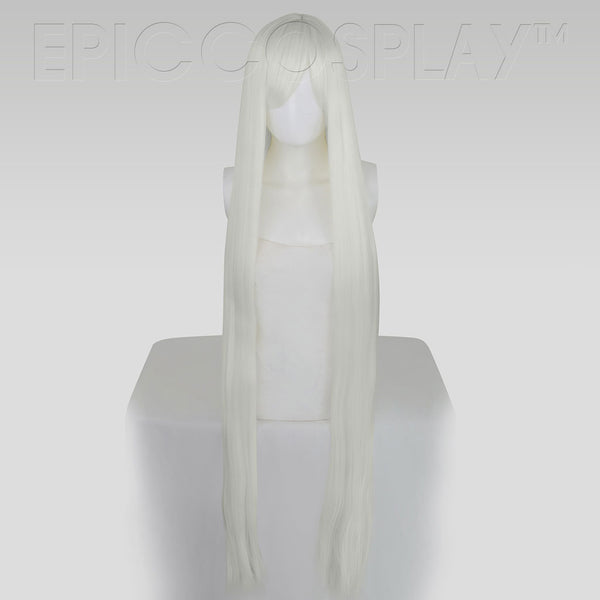 Asteria Classic White Very Long Straight Wig Our Asteria style Classic White Very Long straight wig boasts an impressive total of 50” in length. This style is long enough to reach just above the knees on someone who is 5'5, so be sure to take into consideration your own height to estimate where it will fall. This wig comes with 7” bangs perfect for wearing straight out of the bag. These bangs can be worn straight, side swept, or even cut and styled to suit your specific needs. A skintop at the crown of this wig makes it possible to part the hair in a variety of ways with the help of a little bit of heat. Our Classic White very long straight wig is also tangle resistant, which makes maintenance and care an easy, hassle free job. Our wigs are made of heat resistant fibers, meaning you can style this very long straight wig with heated tools such as flat irons, curling irons, and blow dryers. Our fibers can withstand temperatures up to 410 degrees Fahrenheit, though we suggest keeping the temperature around 350F to avoid changing the texture of the fiber. An adjustable, breathable cap makes our Classic White very long straight wig comfortable and easy to wear by anyone regardless of head shape and size for all day use.