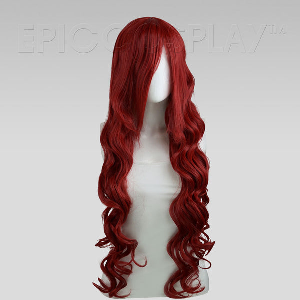 Hera Long Curly Dark Red Wig Our Hera style is one of our most iconic styles known for its soft, luscious curls and incredible length. This long curly Dark Red wig measures at a total of 40 inches with long bangs that fall to approximately 11 inches. Due to the length of these bangs, versatility is practically endless when it comes to styling; You can pin them to the side, part them in the middle for a face framing look, or give them a little trim to create your own perfect Hime cut bangs. This long curly Dark Red wig is available in a wide variety of beautiful and unique colors, which can all be viewed here. This long curly Dark Red wig, along with the rest of our wigs, is created using a high-quality synthetic fiber that is both tangle resistant and heat treatable. Due to this quality, this wig can be styled with heated tools such as flat irons, blow dryers, and curling irons reaching temperatures up to 410 degrees Fahrenheit (though we do suggest keeping heat around 350 degrees to avoid potentially changing the fiber's texture). The soft and silky texture of this long curly Dark Red wig helps to keep it tangle free and easy to mantain, even after multiple uses. An adjustable, breathable cap allows for comfortable wear all day long, regardless of head shape or size.