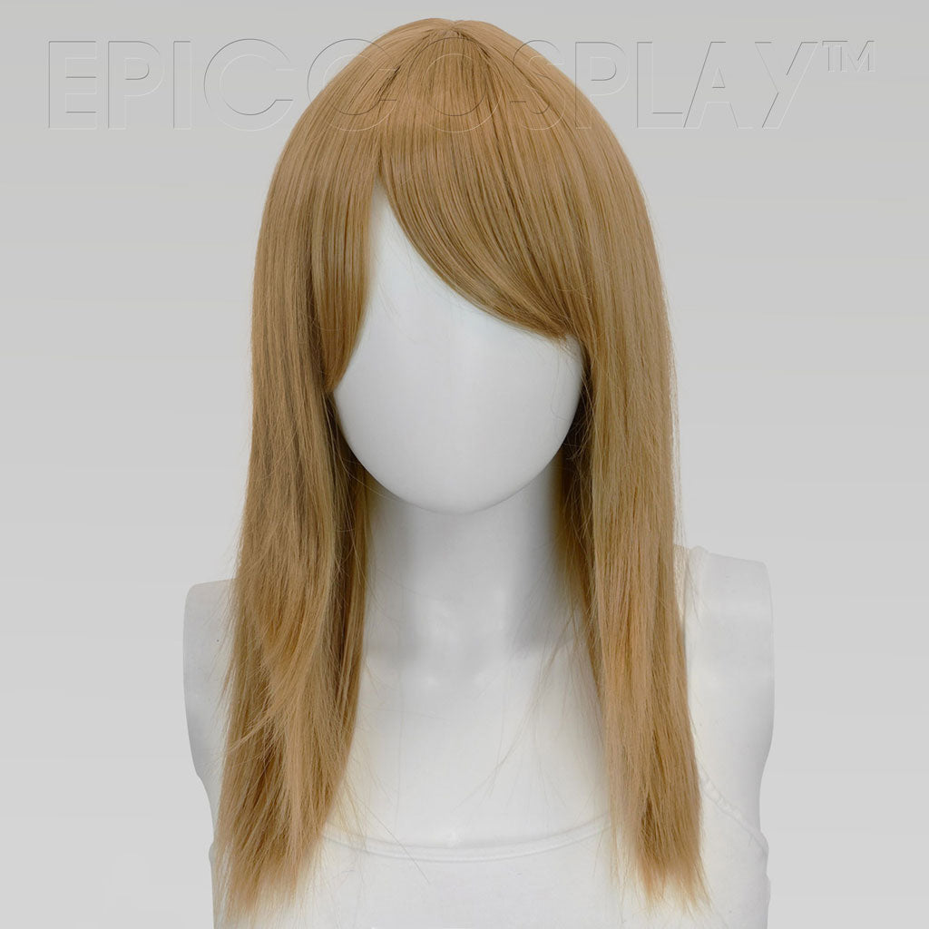 Our Theia is a straight and very versatile style perfect for cosplay, costuming, or even casual daily wear. This Caramel Brown medium wig reaches an overall length of 20", making it fall slightly past the shoulders on most.