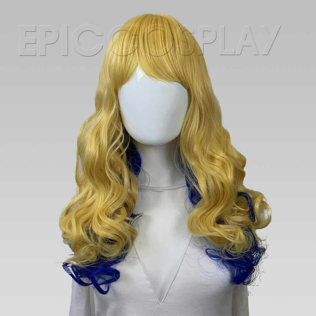 Our Signature - Yellow Blonde and Blue Peekaboo Wig is a beautiful wavy curly wig with bangs.
