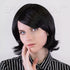The Chronos style Black layered bob wig is a face framing style, perfect to be worn independently or with the addition of clip-on ponytails extension, pigtails, and buns. A circular skin top measuring 2" in diameter and sitting at the crown of the wig style the fiber in numerous directions and create various parts. Bangs reaching 8" at the front of this Black layered bob wig make creating styles such as middle parts, side swept and trimmed bangs easy.