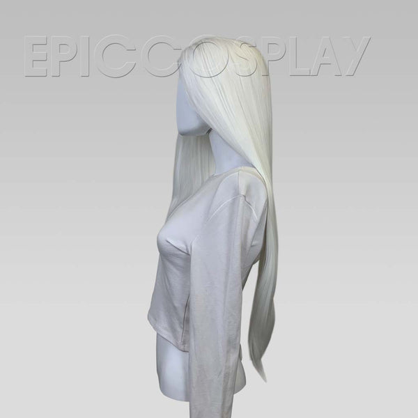 Eros Multipart Classic White Long Wig This Eros wig is a multipart long wig that is perfect for use as an alternative to lace front wigs. A large skintop along the front of this wig creates a natural looking hairline and allows for parting in a variety of directions. You can slick it back, part it to the side, or even create bangs with the help of a little bit of heat from a blow dryer. If a length of 31.5" is a little bit too much for you, it can easily be trimmed shorter or pulled back into a ponytail due to its thick wefting. This multipart Classic White long wig is also made with our tangle resistant fibers, making maintenance and care an easy, hassle free job. Due to our fibers being heat resistant, this multipart Classic White long wig can be styled with the help of heated tools such as flat irons, curling irons, and blow dryers up to 410 degrees Fahrenheit (though we suggest not exceeding 350F, as long term exposure to heat can potentially change the fiber's texture). With the help of heat, a wide variety of styles are achievable with this wig. An adjustable, breathable cap makes this multipart Classic White long wig comfortable to wear for all day use.
