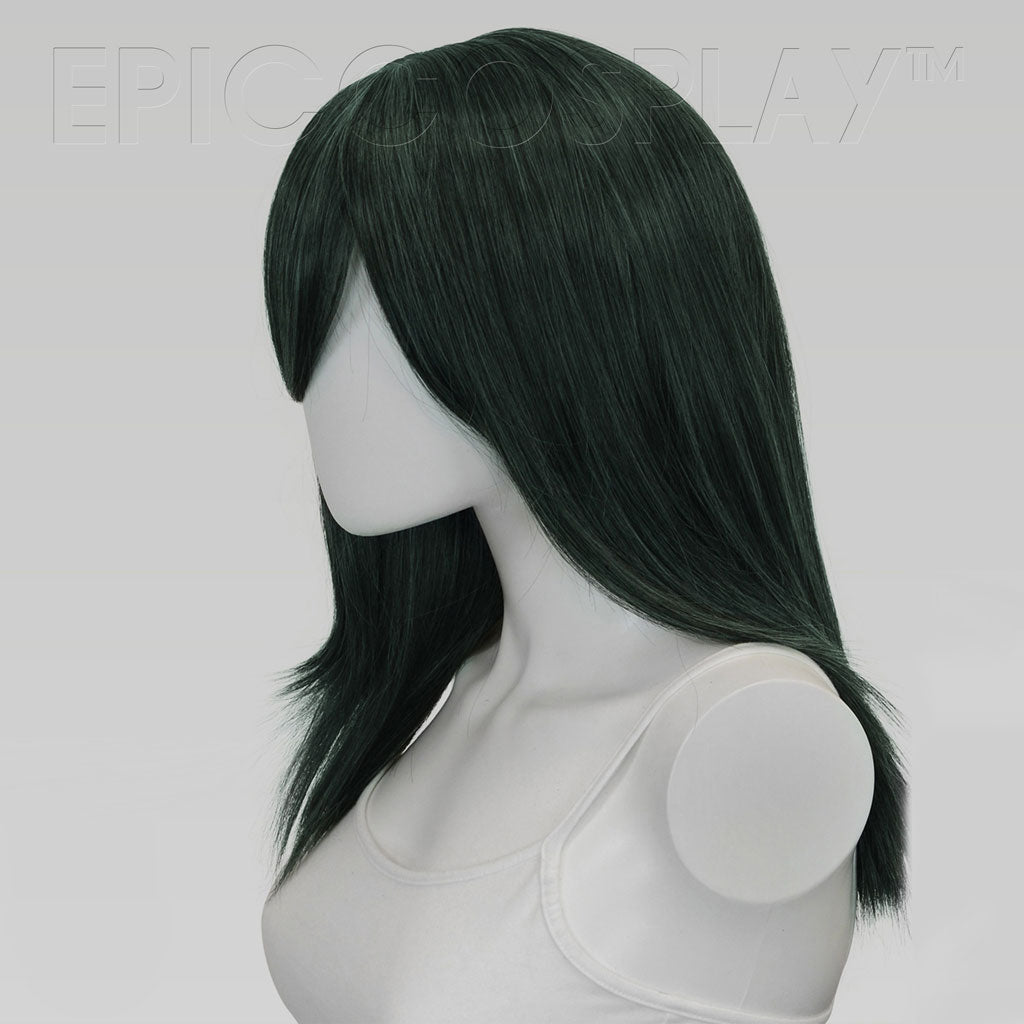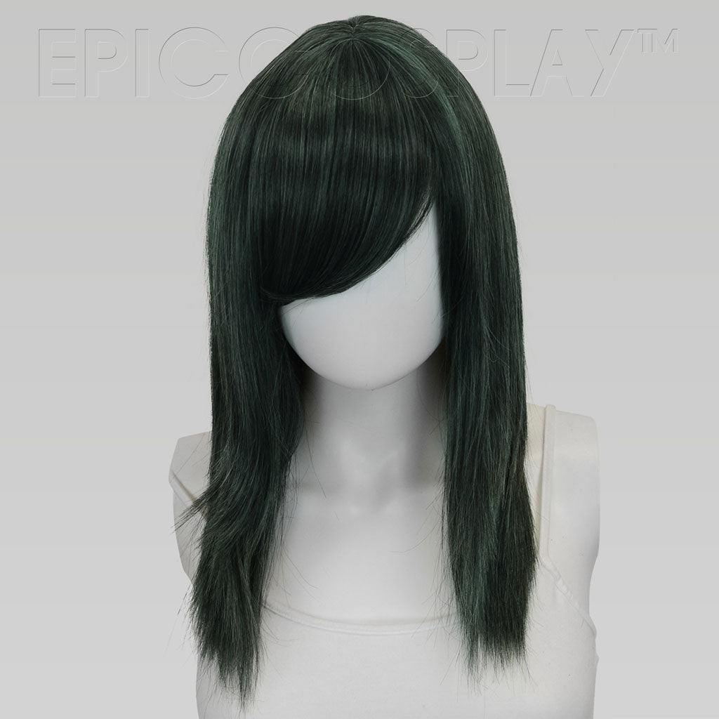 Our Theia is a straight and very versatile style perfect for cosplay, costuming, or even casual daily wear. This Forest Green Mix medium wig reaches an overall length of 20", making it fall slightly past the shoulders on most wearers. With 7" bangs, a variety of styles can be achieved by trimming the fiber or simply using pins to create a cute side swept appearance. A 4" by 5.5" half circle skintop at the crown of this Forest Green Mix medium wig gives it an incredibly natural looking hairline, and gives many options for parting and styling.