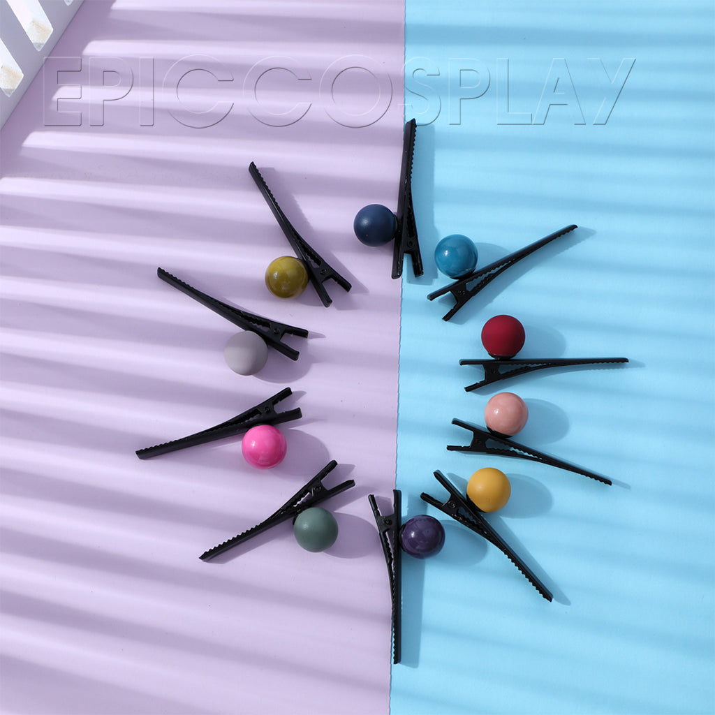 A set of alligator hair clips with assorted colored glossy Beads.