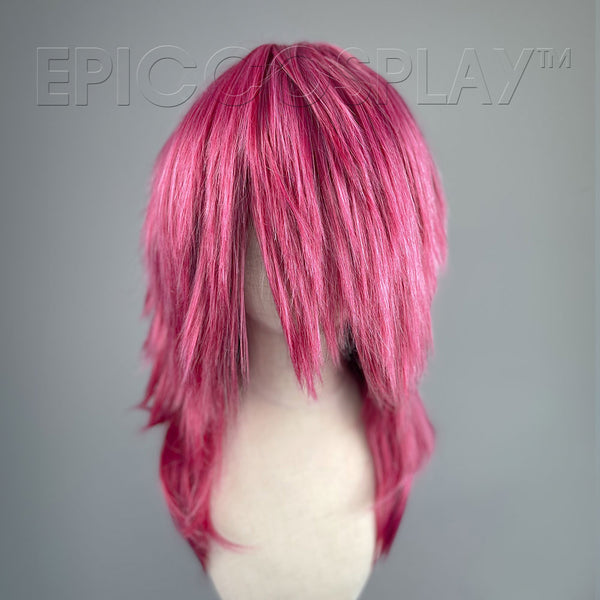 Our Helios style is an extremely layered and dimensional Raspberry Pink Mix Medium wig for spiking. This wig measures at 11" from the back of the hairline to the longest part of the wig, and features a variety of different lengths that make it perfect for shaggy and spiked appearances. The front and sides of this wig are significantly shorter than the back,