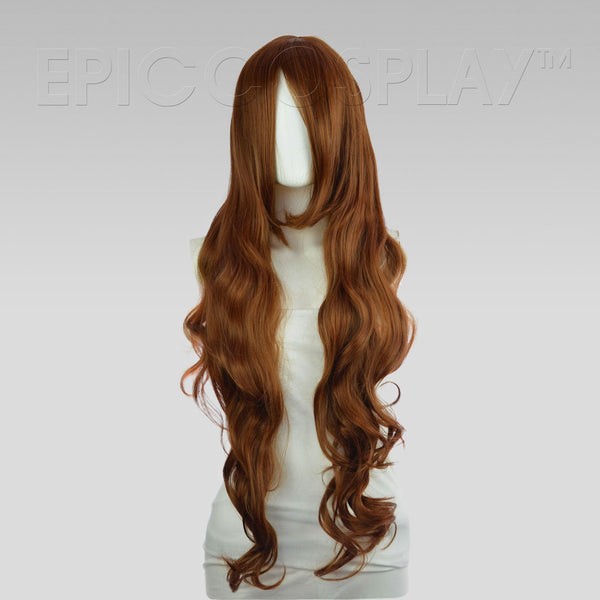 Hera Long Curly Light Brown Wig Our Hera style is one of our most iconic styles known for its soft, luscious curls and incredible length. This long curly Light Brown wig measures at a total of 40 inches with long bangs that fall to approximately 11 inches. Due to the length of these bangs, versatility is practically endless when it comes to styling; You can pin them to the side, part them in the middle for a face framing look, or give them a little trim to create your own perfect Hime cut bangs. This long curly Light Brown wig is available in a wide variety of beautiful and unique colors, which can all be viewed here. This long curly Light Brown wig, along with the rest of our wigs, is created using a high-quality synthetic fiber that is both tangle resistant and heat treatable. Due to this quality, this wig can be styled with heated tools such as flat irons, blow dryers, and curling irons reaching temperatures up to 410 degrees Fahrenheit (though we do suggest keeping heat around 350 degrees to avoid potentially changing the fiber's texture). The soft and silky texture of this long curly Light Brown wig helps to keep it tangle free and easy to mantain, even after multiple uses. An adjustable, breathable cap allows for comfortable wear all day long, regardless of head shape or size.