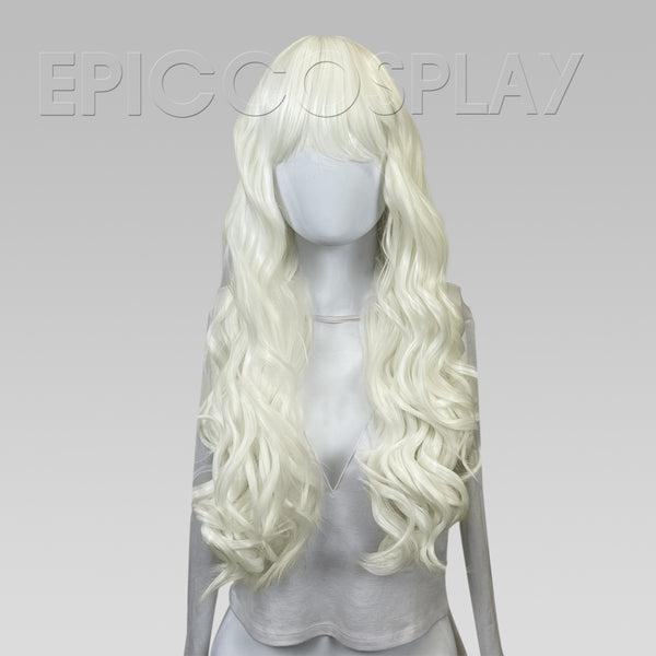 Iris is a beautiful 30" long Classic White wavy lolita wig perfect for creating a wide variety of styles. While this wig is suited for lolita, it's also great for things such as cosplay, costuming, or even casual daily wear. Straight bangs reaching eyebrow make wearing this wig hassle free, while simultaneously offering enough length for trimming and styling. This Classic White wavy lolita wig comes pre-styled with loose, flowing curls and our tangle-resistant fiber makes maintenance a breeze.