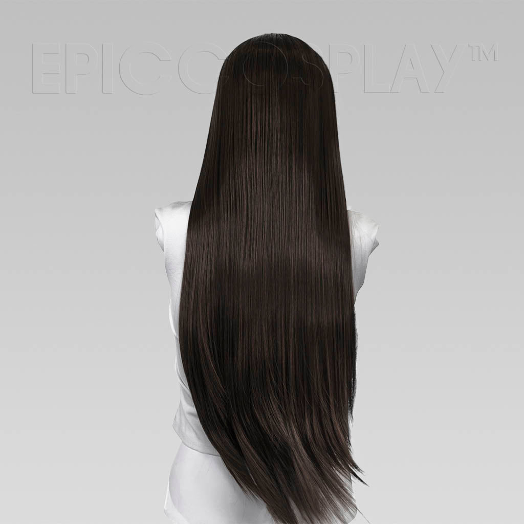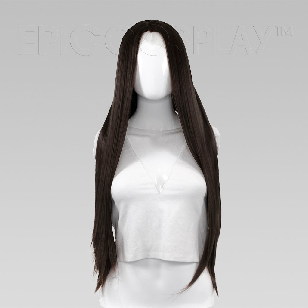 Eros Lacefront Dark Brown Wig Dimensions Length: 23" (from back hairline to bottom of wig) Lace: 12" x 1" (unventilated area) Cap Size: 21.5" Please review these measurements carefully as wigs tend to look a bit longer on mannequins due to their smaller head size.