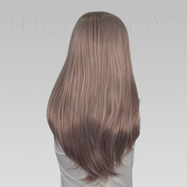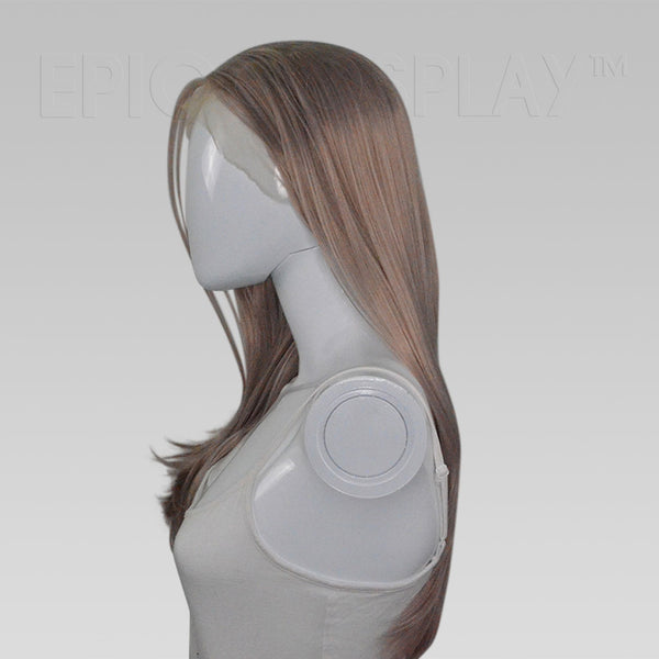 Our Scylla style is a 25 inch long lace front wig, measuring from hairline to end. The lace extends 11.8 inches across and 0.8 inches deep. This Scylla style is a hazy grey wig that mixes a shade of brown with grey to create this unique color.