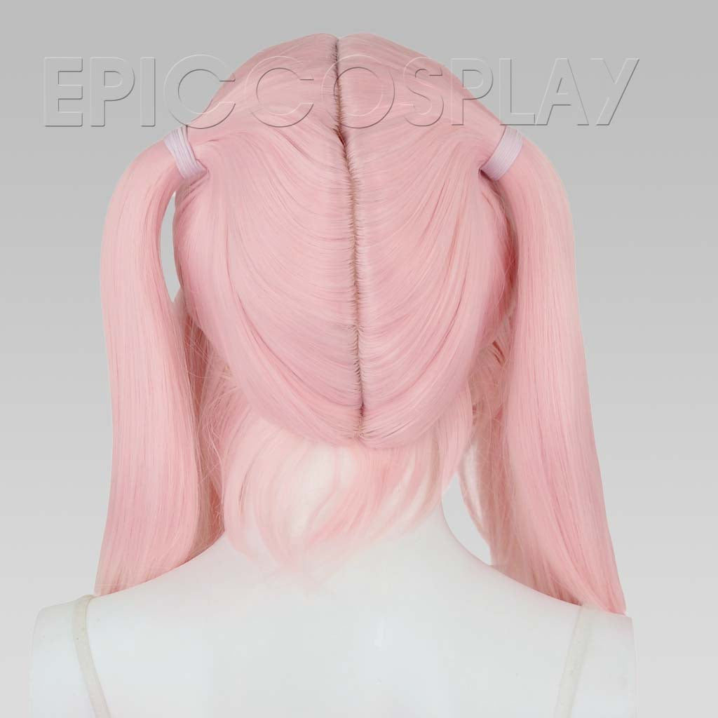 Long and flowing pigtails are a classic staple in the cosplay world. Our Gaia style Fusion Vanilla Pink pigtail wig offers an easy and natural looking way to achieve such a classic and timeless look. Front facing bangs reach a a total of 7", making them versatile in creating a number of different styles. Longer side bangs that fall to 10 1/2" create a flattering, face framing appearance with ease. Long twin tails allow for styling as is, or can be customized with our many clip on extensions and accessories, such as our 50" waterfall extensions and clip-on buns. To top it all off, the back of this wig is naturally pulled back into the pigtails with a long skintop to create a natural part that can be readjusted as you see fit.