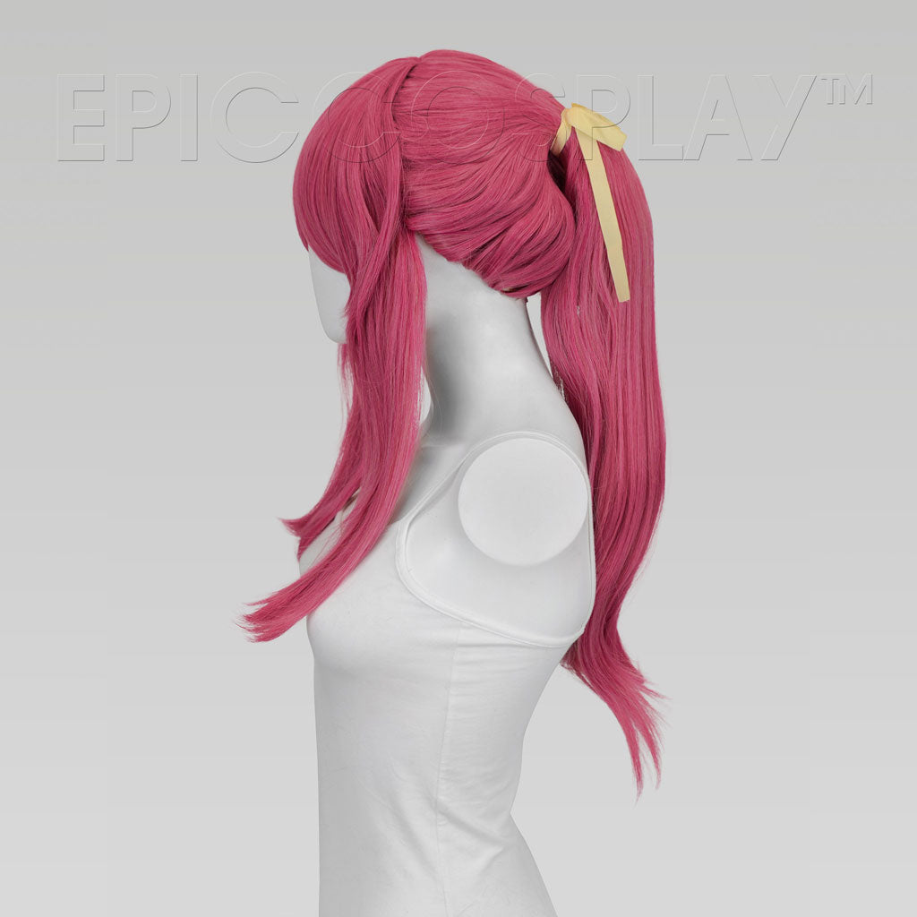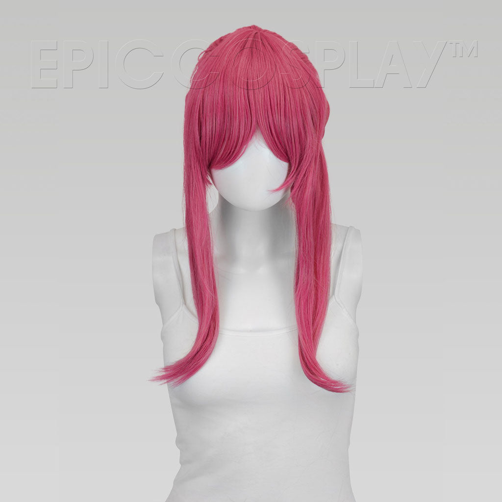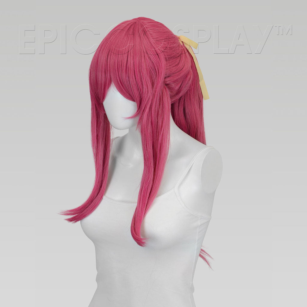 Phoebe Sky Magenta Ponytail Wig This Sky Magenta ponytail wig is naturally pulled back to create a beautiful and realistic look. Starting at its base, the wig is pulled into a short ponytail reaching 7". This ponytail can be undone to be raised, lowered,