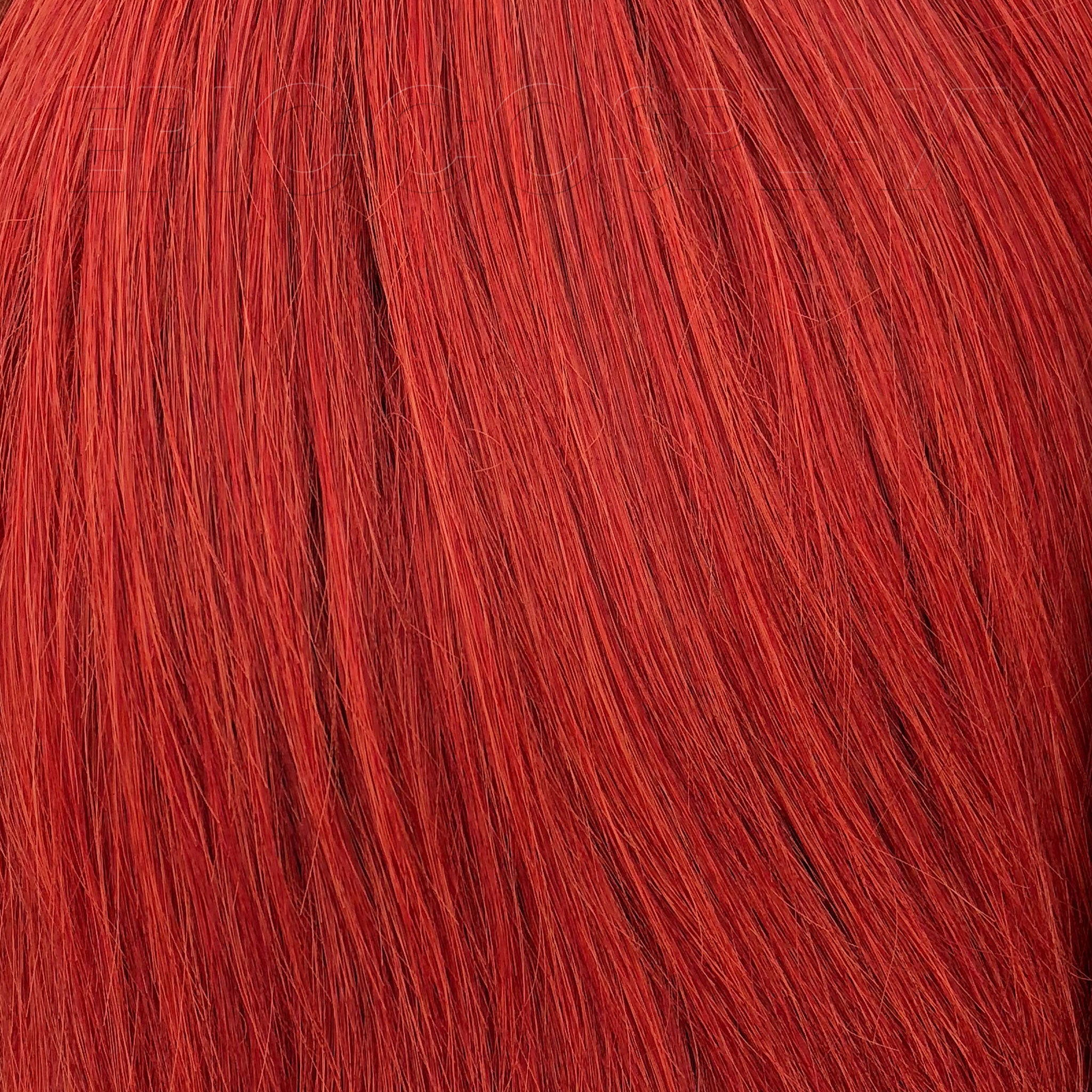 Our 35" Apple Red Mix weft extensions are the perfect way to add a bit of flare to any Epic Cosplay wig! These wefts can be used to create additional length, thickness, or a fun splash of vibrant color in your wig. The fiber of these Apple Red Mix weft extensions falls to a total of 35 inches. A thin wefting strip runs along the top of the fiber, also measuring 30 inches in width. This strip of wefting allows the fiber to be easily sewn into the foundation of any pre-existing wig, making them perfect for creating styles such as high ponytails, zig-zag parts, and out of this world volume. These beautiful Apple Red Mix weft extensions are also available in many different colors, allowing you to mix-and-match colors for even the most dramatic of multicolored styles.