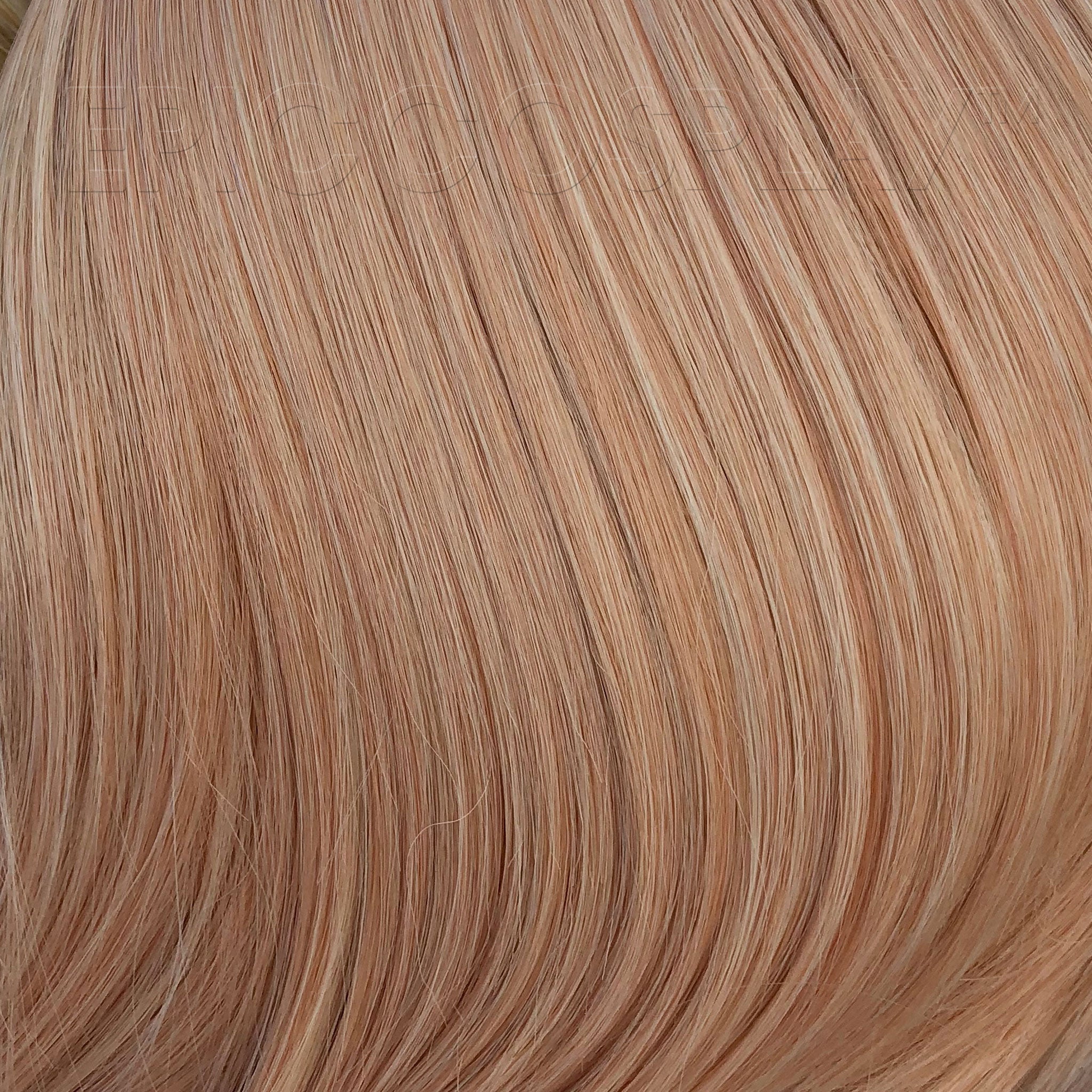 Due to our fibers being heat resistant, these 35" Peach Blonde weft extensions can be styled with tools such as flat irons, blow dryers, and curling irons heated to temperatures up to 410 degrees Fahrenheit (though we suggest keeping the temperature around 350 degrees as long term exposure to heat could potentially change the fiber's texture). Our fibers are also tangle resistant, making them easy to take care of and maintain. Since the fiber of these extensions are pre-sewn onto a wefting strip, they are an easy and mess-free way of adding additional fiber to any wig.