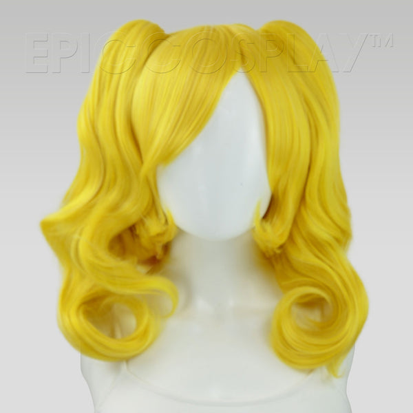 Rhea Rich Butterscotch Blonde Pigtail Wig SetThis Rich Butterscotch Blonde pigtail wig set uses our 14" Chronos style as a base for two of our 20" clip-on ponytails to create a a fun and versatile pigtail style. The base wig is a short bob cut style that