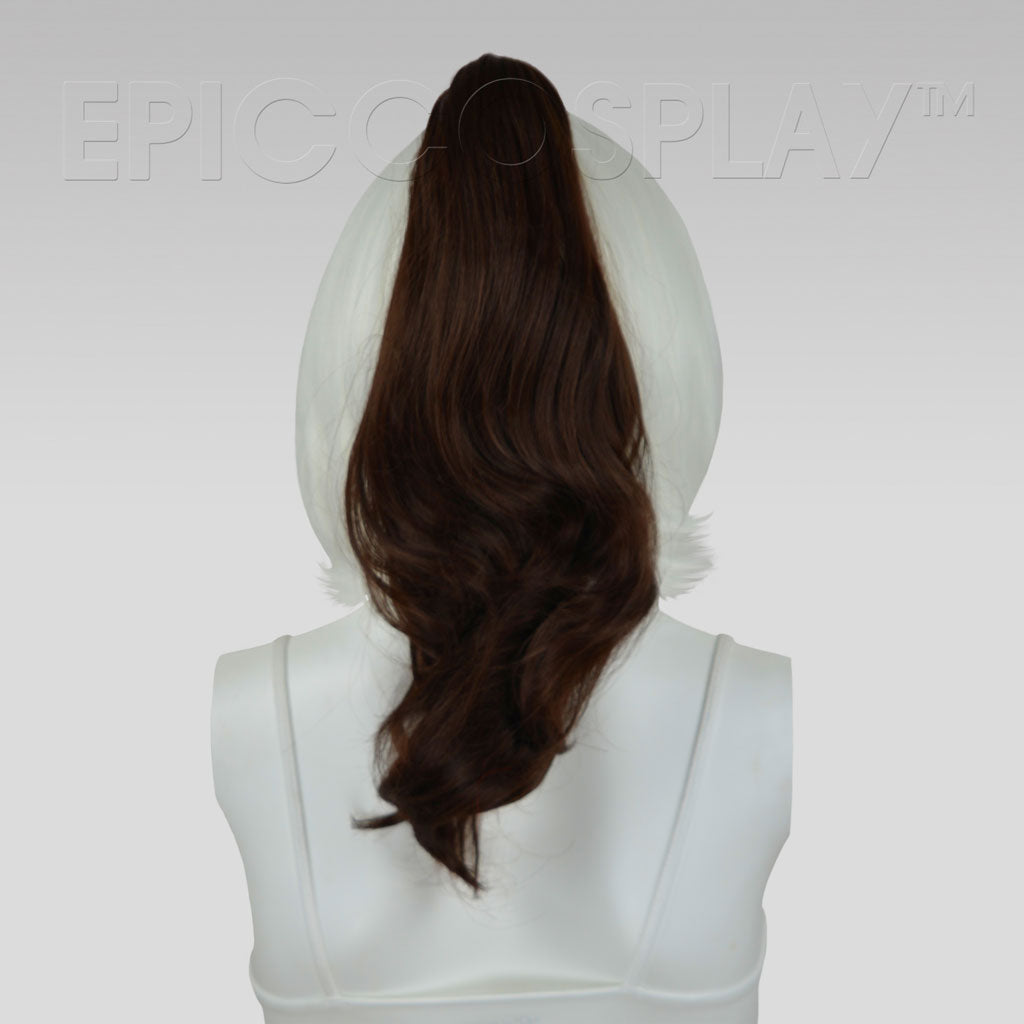 We're bringing out the big guns now! Take the clip part out of two short curly clips in Dark Brown and either sew or glue them on top of a Hermes in Dark Brown for a quick buzz cut look. Since our fibers are heat resistant, you can curl the top of an Atlas in Black without burning the wig.