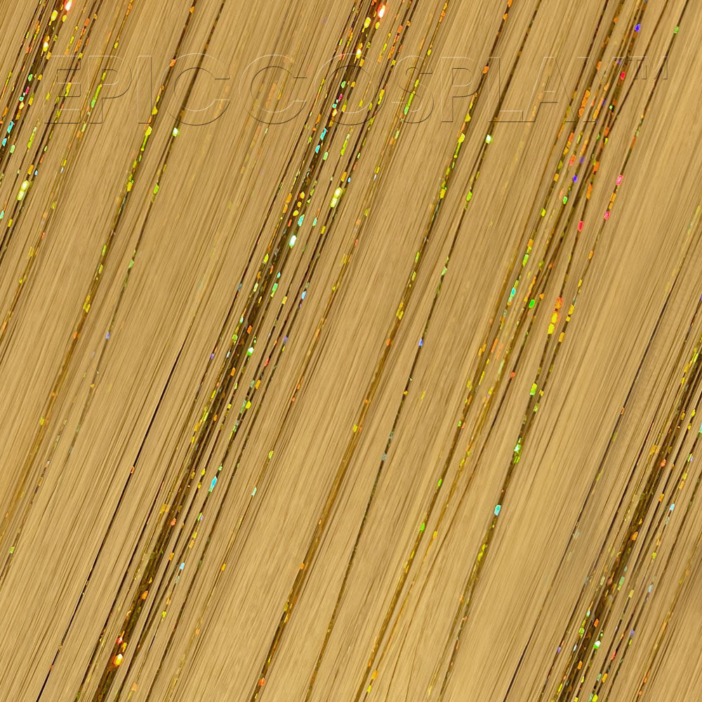 Want to add sparkles to your hair or your wig? Our 35" tinsel blended weft extensions are perfect! These wefts can be used to create additional length, thickness, or a fun splash of vibrant color in your wig. The fiber of these Natural Blonde weft extensions falls to a total of 35 inches. A thin wefting strip runs along the top of the fiber, also measuring 30 inches in width. This strip of wefting allows the fiber to be easily sewn into the foundation of any pre-existing wig, making them perfect for creating styles such as high ponytails, zig-zag parts, and out of this world volume. These beautiful Natural Blonde weft extensions are also available in many different colors, allowing you to mix-and-match colors for even the most dramatic of multicolored styles.