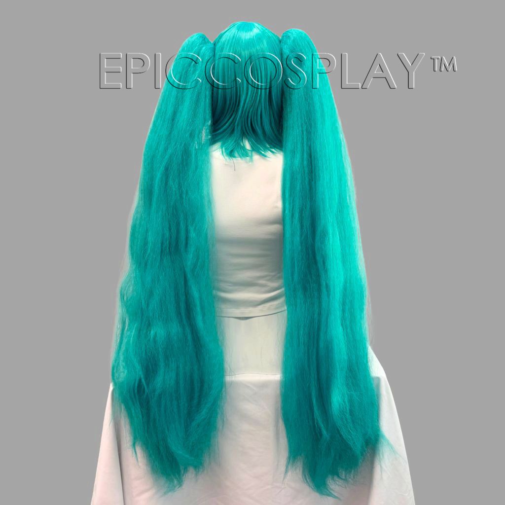 Crimped Eos Vocaloid Green Long Pigtail Wig Set --Crimped long and glamorous twintails are exactly what cosplay dreams are made of. Those dreams are about to become a reality, as you can now wear this adorably classic hairstyle with ease thanks to our Vocaloid Green long wig set ((One Chronos Wig + Two Crimped Ponytail Clipons)