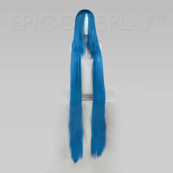 Our Demeter style Teal Blue Mix Very Long straight wig boasts an impressive total of 60” in length. This style is long enough to reach low on the calf on someone who is 5’5’’, so be sure to take into consideration your own height to estimate where it will fall. This wig comes with 15” bangs perfect for wearing straight out of the bag. These bangs can be worn straight, side swept, or even cut and styled to suit your specific needs. A skin top at the crown of this wig makes it possible to part the hair in a variety of ways with the help of a little bit of heat. Our Teal Blue Mix very long straight wig is also tangle resistant, which makes maintenance and care an easy, hassle free job.