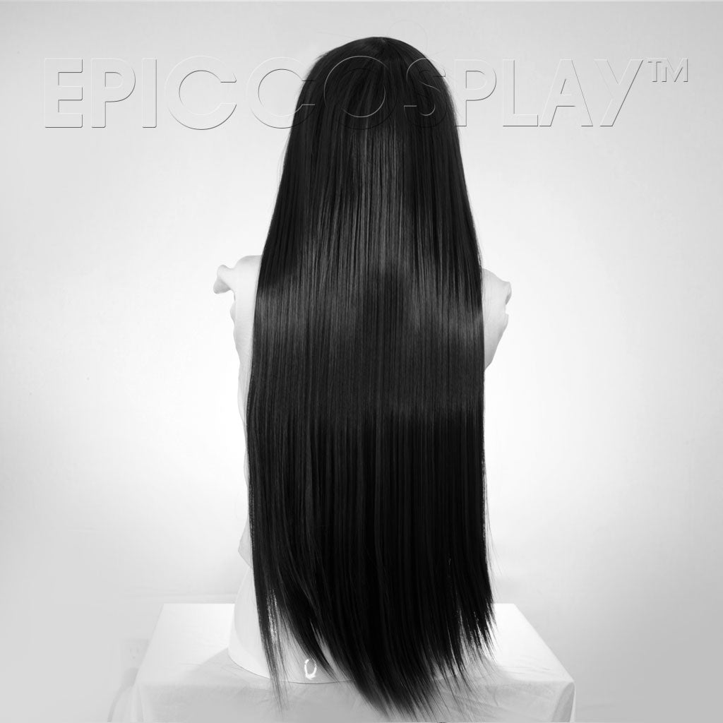 Eros Lacefront Black Wig Dimensions Length: 23" (from back hairline to bottom of wig) Lace: 12" x 1" (unventilated area) Cap Size: 21.5" Please review these measurements carefully as wigs tend to look a bit longer on mannequins due to their smaller head size.