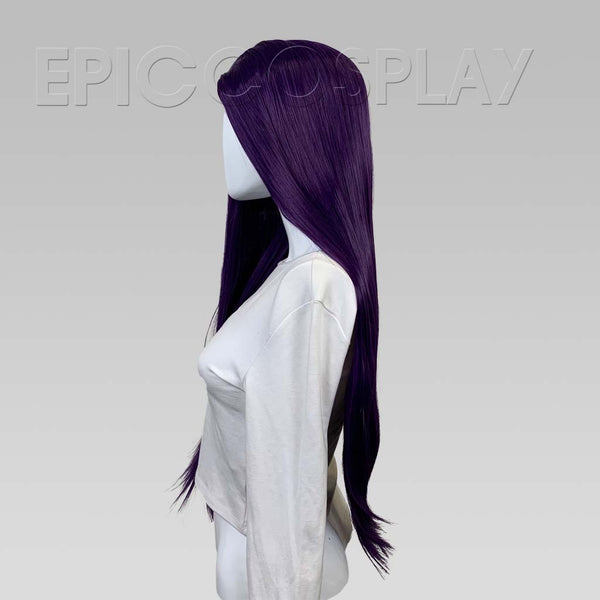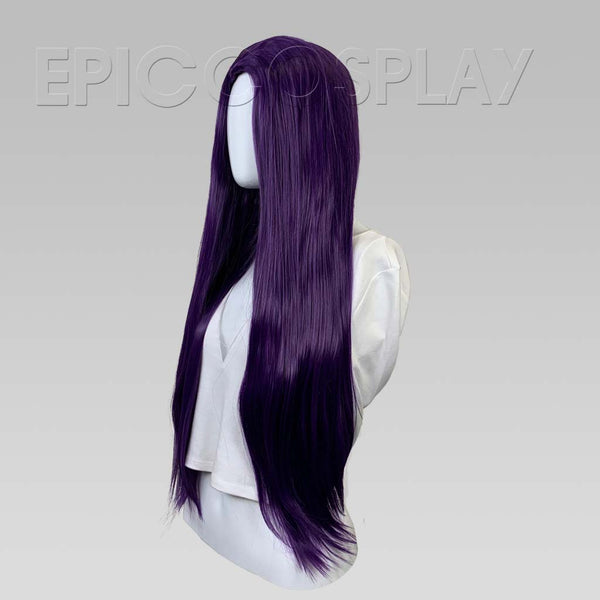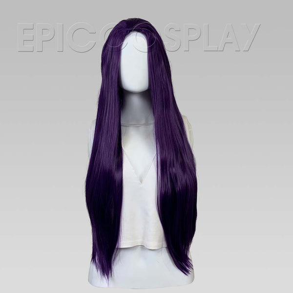 This Eros wig is a multipart long wig that is perfect for use as an alternative to lace front wigs. A large skintop along the front of this wig creates a natural looking hairline and allows for parting in a variety of directions. You can slick it back, part it to the side, or even create bangs with the help of a little bit of heat from a blow dryer. If a length of 31.5" is a little bit too much for you, it can easily be trimmed shorter or pulled back into a ponytail due to its thick wefting. This multipart Royal Purple long wig is also made with our tangle resistant fibers, making maintenance and care an easy, hassle free job.