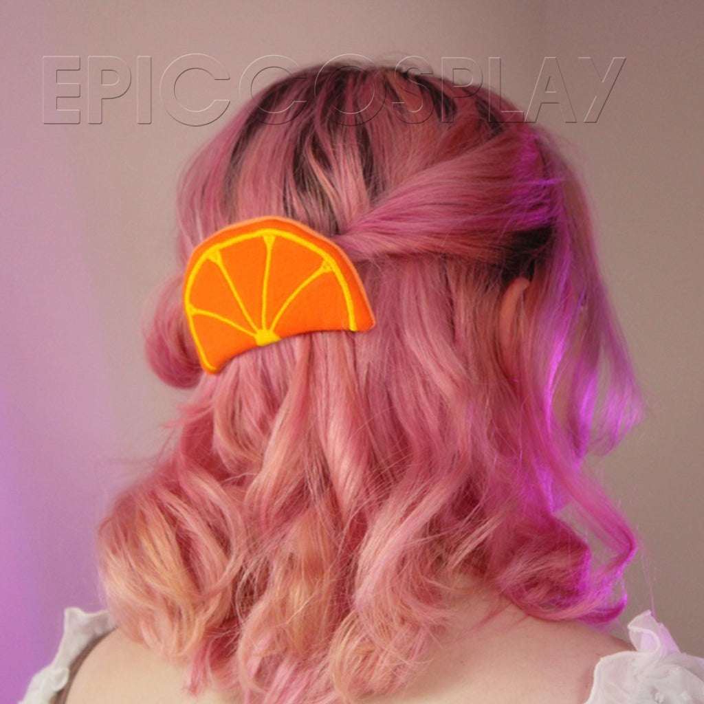 Embroidered Orange Slice Snap Barrette Hair Clip