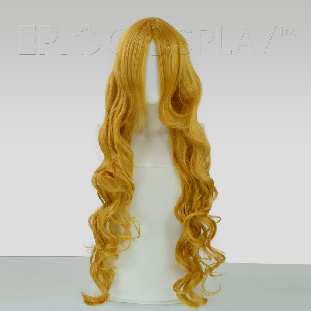 Hera Long Curly Autumn Gold WigOur Hera style is one of our most iconic styles known for its soft, luscious curls and incredible length. This long curly Autumn Gold wig measures at a total of 40 inches with long bangs that fall to approximately 11 inches.