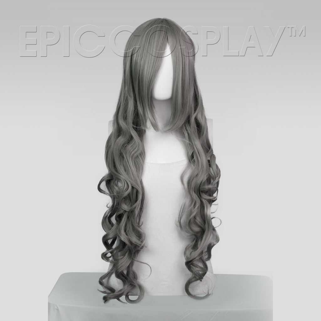 Hera Long Curly Black Wig Our Hera style is one of our most iconic styles known for its soft, luscious curls and incredible length. This long curly Black wig measures at a total of 40 inches with long bangs that fall to approximately 11 inches. Due to the length of these bangs, versatility is practically endless when it comes to styling; You can pin them to the side, part them in the middle for a face framing look, or give them a little trim to create your own perfect Hime cut bangs. This long curly Black wig is available in a wide variety of beautiful and unique colors, which can all be viewed here. This long curly Black wig, along with the rest of our wigs, is created using a high-quality synthetic fiber that is both tangle resistant and heat treatable. Due to this quality, this wig can be styled with heated tools such as flat irons, blow dryers, and curling irons reaching temperatures up to 410 degrees Fahrenheit (though we do suggest keeping heat around 350 degrees to avoid potentially changing the fiber's texture). The soft and silky texture of this long curly Black wig helps to keep it tangle free and easy to mantain, even after multiple uses. An adjustable, breathable cap allows for comfortable wear all day long, regardless of head shape or size.