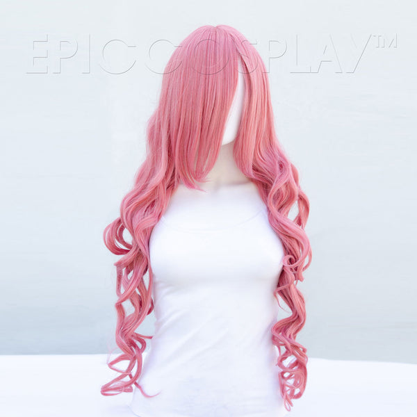 Hera Long Curly Princess Pink Mix Wig Our Hera style is one of our most iconic styles known for its soft, luscious curls and incredible length. This long curly Princess Pink Mix wig measures at a total of 40 inches with long bangs that fall to approximately 11 inches. Due to the length of these bangs, versatility is practically endless when it comes to styling; You can pin them to the side, part them in the middle for a face framing look, or give them a little trim to create your own perfect Hime cut bangs. This long curly Princess Pink Mix wig is available in a wide variety of beautiful and unique colors, which can all be viewed here. This long curly Princess Pink Mix wig, along with the rest of our wigs, is created using a high-quality synthetic fiber that is both tangle resistant and heat treatable. Due to this quality, this wig can be styled with heated tools such as flat irons, blow dryers, and curling irons reaching temperatures up to 410 degrees Fahrenheit (though we do suggest keeping heat around 350 degrees to avoid potentially changing the fiber's texture). The soft and silky texture of this long curly Princess Pink Mix wig helps to keep it tangle free and easy to mantain, even after multiple uses. An adjustable, breathable cap allows for comfortable wear all day long, regardless of head shape or size.