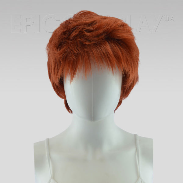 Hermes Copper Red Pixie Hair Wig The 12" short Copper Red pixie hair has naturally feathered layers all throughout, giving it a textured look and making it perfect for voluminous and spiked styles. This style extends down at the nape of the neck to hide any existing hairline. Short bangs in the front are easy to style upwards or flat against the forehead with the help of a flat iron or blow dryer, allowing this Copper Red pixie hair to be versatile and used for a variety of different looks. Our adjustable, breathable 23" cap makes this Copper Red pixie hair capable of fitting both male and female head sizes comfortably. The fiber in this Copper Red pixie hair is heat resistant, meaning it's possible to style with tools such as flat irons and blow dryers up to temperatures of 410 degrees (though we recommend keeping tools around 350F, as the fiber's texture can change with long-term exposure to heat). With heat and product, it's possible to style anything from dramatic spikes to a sleek, smoothed down look. Our tangle-resistant fibers also make care and maintenance a breeze.