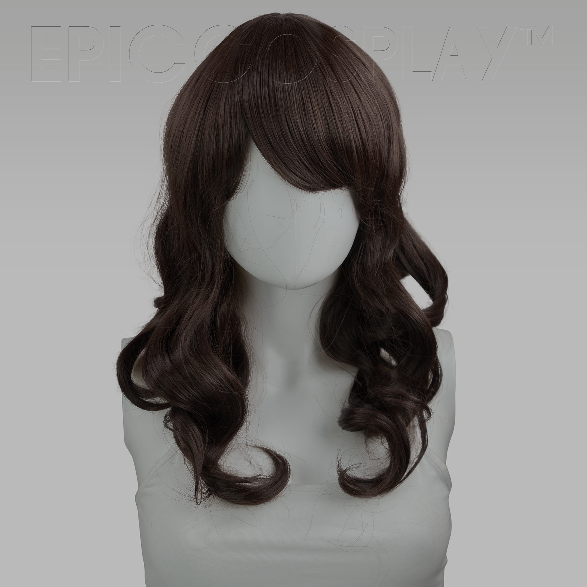 The Hestia line is a shoulder length wig with beautiful style. This Dark Brown Curly Wig goes great as everyday wear or as your favorite character! Our Hestia line is the perfect choice for a medium length wavy wig!