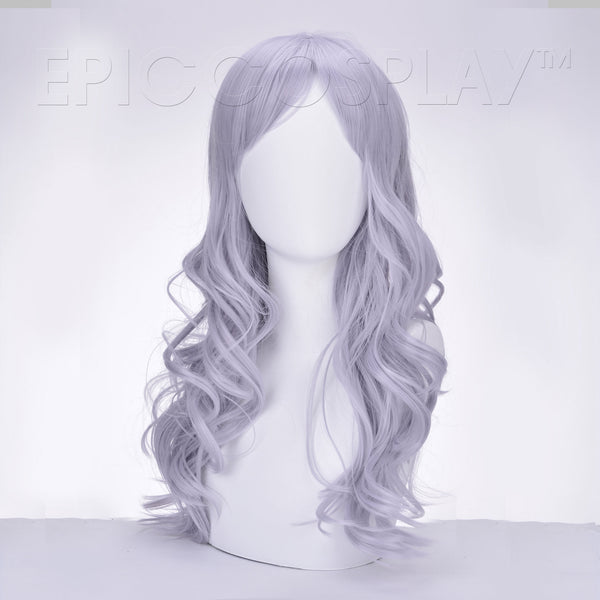 Our Hestia style is one of our most versatile and fun to wear wigs. This Ice Purple curly wig is 22" long, making it fall a few inches past the shoulders on most wearers. Bangs reaching 4" make this wig perfect to wear in a side swept style immediately out of the bag while also leaving enough room to be trimmed for any specific needs. This Ice Purple curly wig can be shaken out to achieve voluminous and bouncy curls, or brushed out into gentle waves. No matter how you wear it, this wig is perfect for cosplay, costuming, and everyday wear.