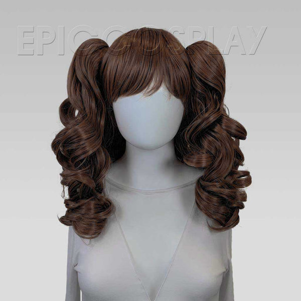Adorable pigtails will always be a staple in most anime, manga, and video games. With the help of this Medium Brown curly wig set, keeping up with the trend just got that much easier! The versatility of this curly Dark Brown curly wig set can take you from having gorgeous curly locks to a bouncy, lively pigtail style with volume that absolutely can't be beat.
