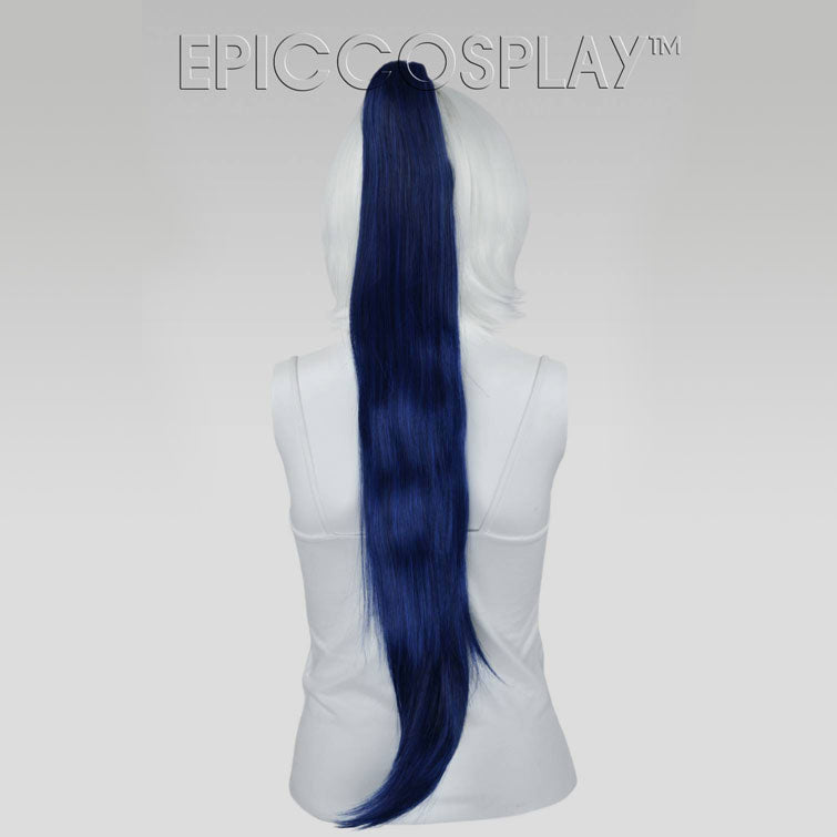 35" Blue Black Fusion Straight Ponytail Clipon