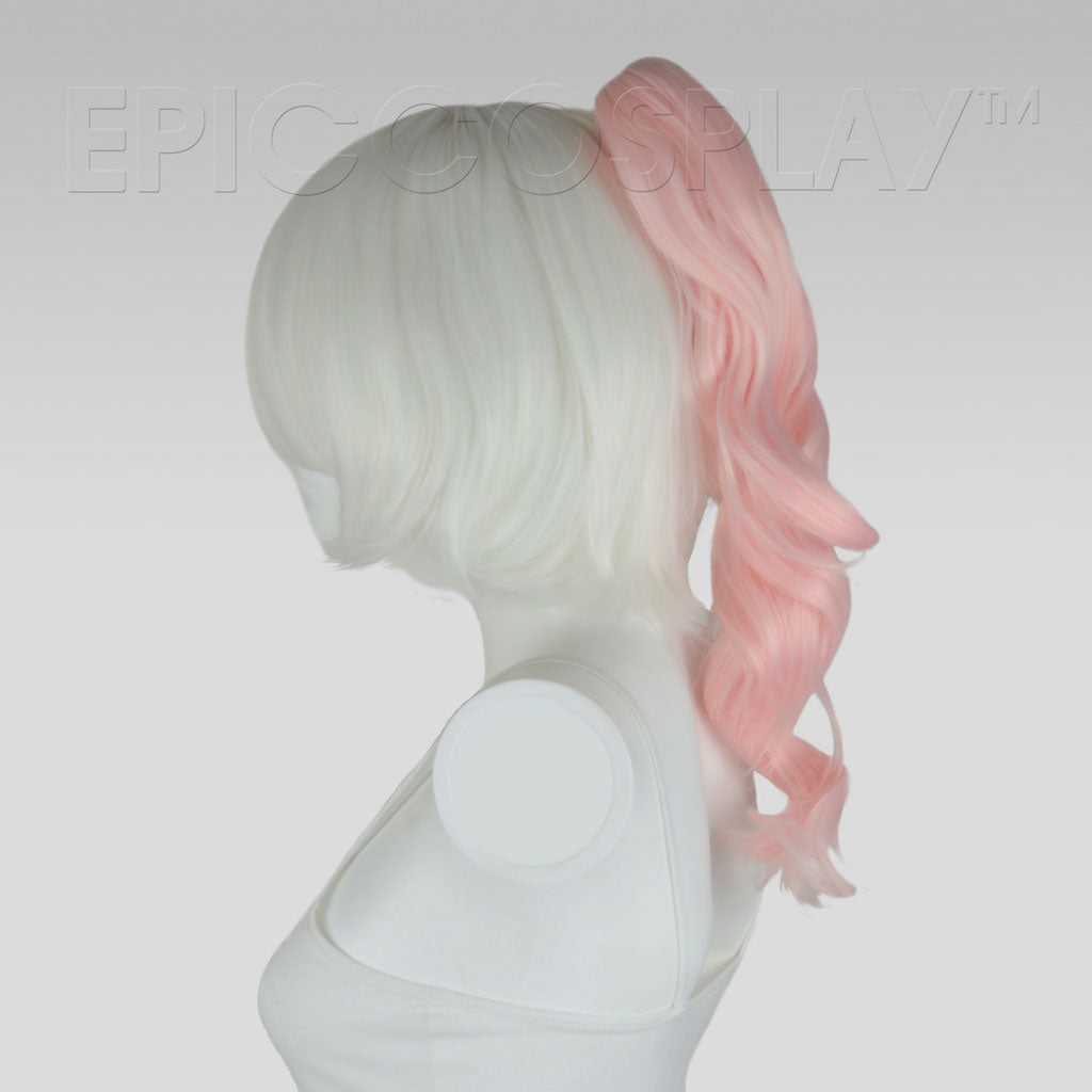 Create a number of fun and unique looks with one of our Fusion Vanilla Pink curly ponytail clips! This clip is specifically designed to be used with one of our wigs as a base and can be attached at any spot where there is netting. This Fusion Vanilla Pink curly ponytail clip can easily be attached at the back or side of any wig, and you can even add a second clip to create cute, bouncy pigtails. A large alligator clip is attached at the very top of the ponytail, making application easy. All you need to do is squeeze the top of the ponytail to open the clip and hook it into place.