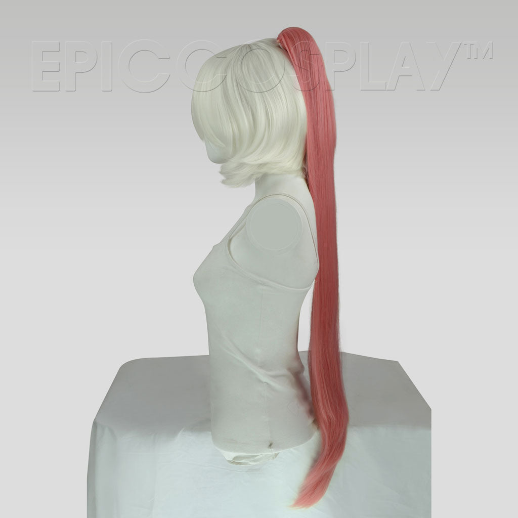 This Princess Dark Pink Mix long ponytail clip measures at 35", making it perfect for long ponytails or even long pigtails if you use two clips. You can mix-and-match this clip with any of our wigs, and attach it wherever there are wefts and netting. A large alligator claw clip at the top of the ponytail makes application as simple as squeezing the clip and hooking it onto the wig. This Princess Dark Pink Mix long ponytail clip is also available in a variety of colors to match any color wig you'd like to use as a base.