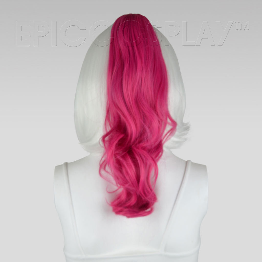 20" Raspberry Pink Wavy Curly Ponytail Clipon