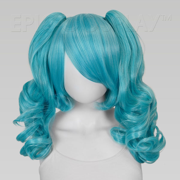 Rhea Anime Blue Mix Pigtail Wig SetThis Anime Blue Mix pigtail wig set uses our 14" Chronos style as a base for two of our 20" clip-on ponytails to create a a fun and versatile pigtail style. The base wig is a short bob cut style that frames the face and