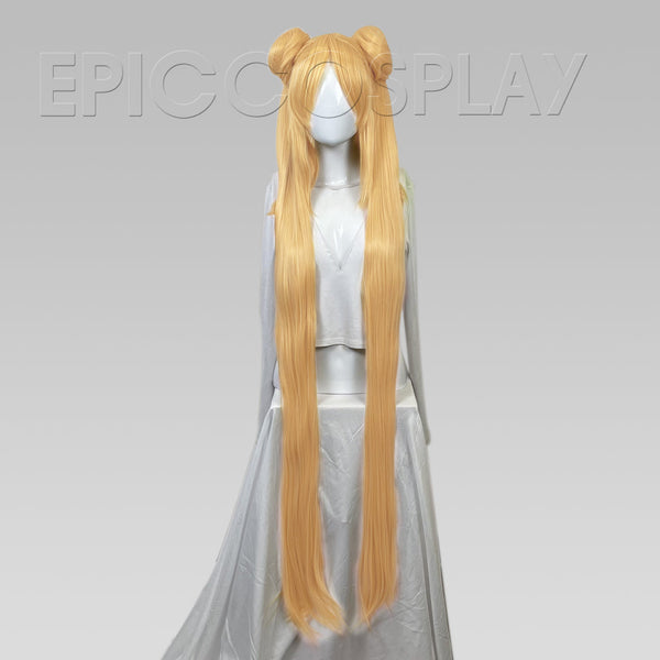 Become your favourite Sailor Senshi with this unique and pre-styled Sailor Moon wig! Our beautiful Butterscotch Blonde color takes center stage in this five-piece wig set, creating the classic and unforgettable Sailor Moon style that lives on in all our hearts. This set comes with one short base wig, two 50" ponytail wraps, and two adorable removable odango buns. Due to the design of this Sailor Moon wig set, it can be restyled and reassembled in a flash, making it easy to keep pristine and battle ready. The removable clips and buns also make it easy to store and travel with.