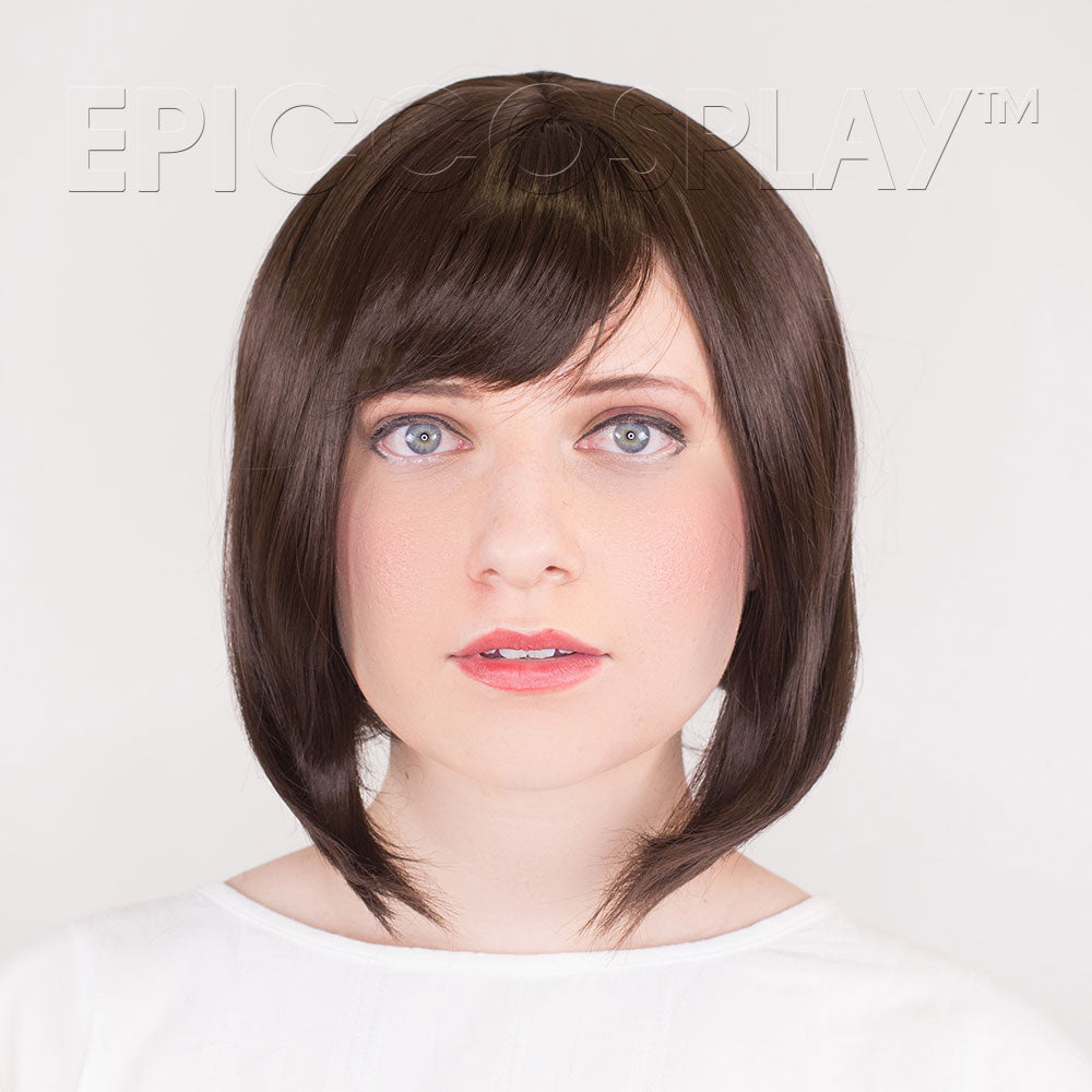 The Selene style is a sleek and fashionable Dark Brown bob perfect for daily wear, lolita, and cosplay costumes. This wig measures 13" at its longest point (the sides), which are angled to perfectly frame the face. The pre-styled blunt cut bangs reach 5" and make this wig perfectly suitable to wear straight out of the bag. Our tangle-resistant fibers also make this Dark Brown bob simple to brush, style, and maintain. If this color isn't quite your style, it also comes in a variety of other shades, which can all be viewed here.