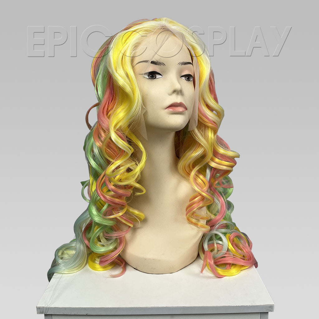 The Signature - Yellow Green Coral Multicolor Lace Front Wig style is versatile, comfortable to wear, and works well with many different head sizes. This Multi Color Curly Wig is perfect for cosplay, costuming, and even daily wear to add a little bit of fun to your daily appearance!