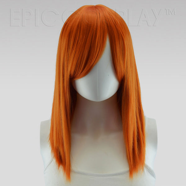 Our Theia is a straight and very versatile style perfect for cosplay, costuming, or even casual daily wear. This Autumn Orange medium wig reaches an overall length of 20", making it fall slightly past the shoulders on most wearers. With 7" bangs, a variety of styles can be achieved by trimming the fiber or simply using pins to create a cute side swept appearance. A 4" by 5.5" half circle skintop at the crown of this Autumn Orange medium wig gives it an incredibly natural looking hairline, and gives many options for parting and styling.