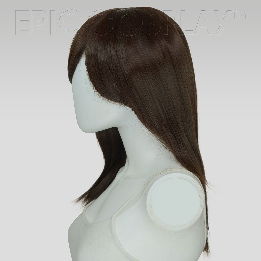 Our Theia is a straight and very versatile style perfect for cosplay, costuming, or even casual daily wear. This Natural Black medium wig reaches an overall length of 20", making it fall slightly past the shoulders on most wearers. With 7" bangs, a variety of styles can be achieved by trimming the fiber or simply using pins to create a cute side swept appearance. A 4" by 5.5" half circle skintop at the crown of this Natural Black medium wig gives it an incredibly natural looking hairline, and gives many options for parting and styling.