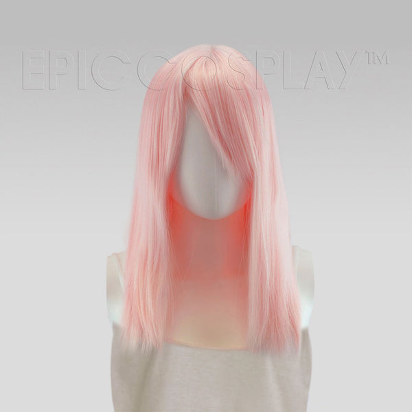 Our Theia is a straight and very versatile style perfect for cosplay, costuming, or even casual daily wear. This Fusion Vanilla Pink medium wig reaches an overall length of 20", making it fall slightly past the shoulders on most wearers. With 7" bangs, a variety of styles can be achieved by trimming the fiber or simply using pins to create a cute side swept appearance. A 4" by 5.5" half circle skintop at the crown of this Fusion Vanilla Pink medium wig gives it an incredibly natural looking hairline, and gives many options for parting and styling.